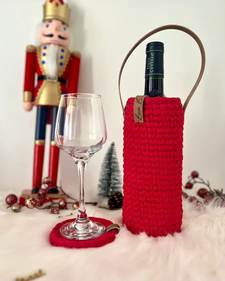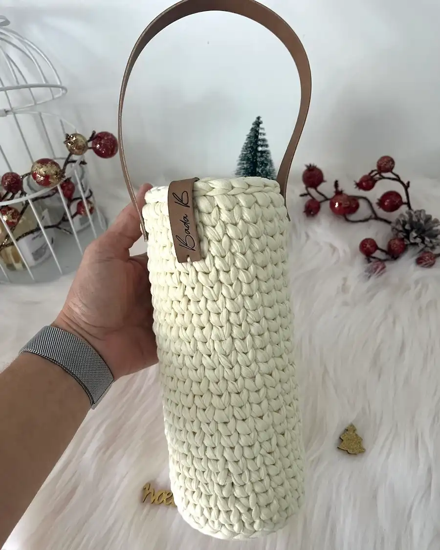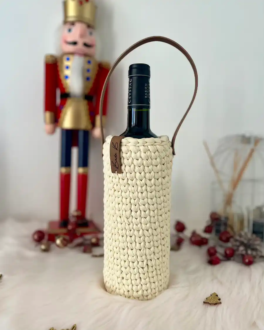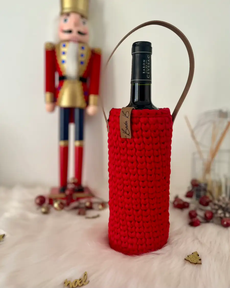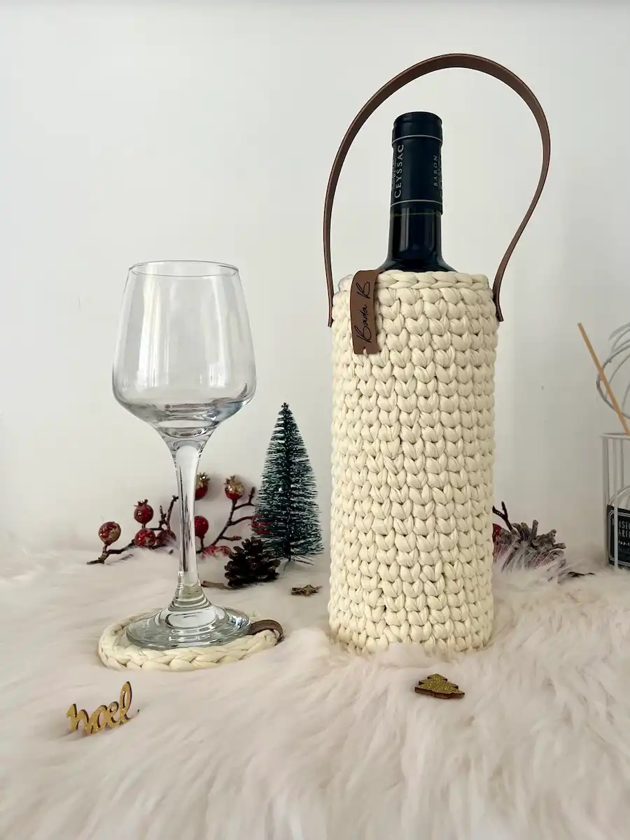 Offrez ou transportez votre bouteille préférée dans un sac unique, confectionné à la main avec du fil de t-shirt recyclé. Ce sac à vin allie style et savoir-faire artisanal, créant un accessoire durable et raffiné. Grâce à ses finitions soignées, il apporte une touche chaleureuse et authentique à vos moments de partage. Un cadeau original, idéal pour accompagner vos dégustations ou surprendre vos proches avec une attention pleine de charme.